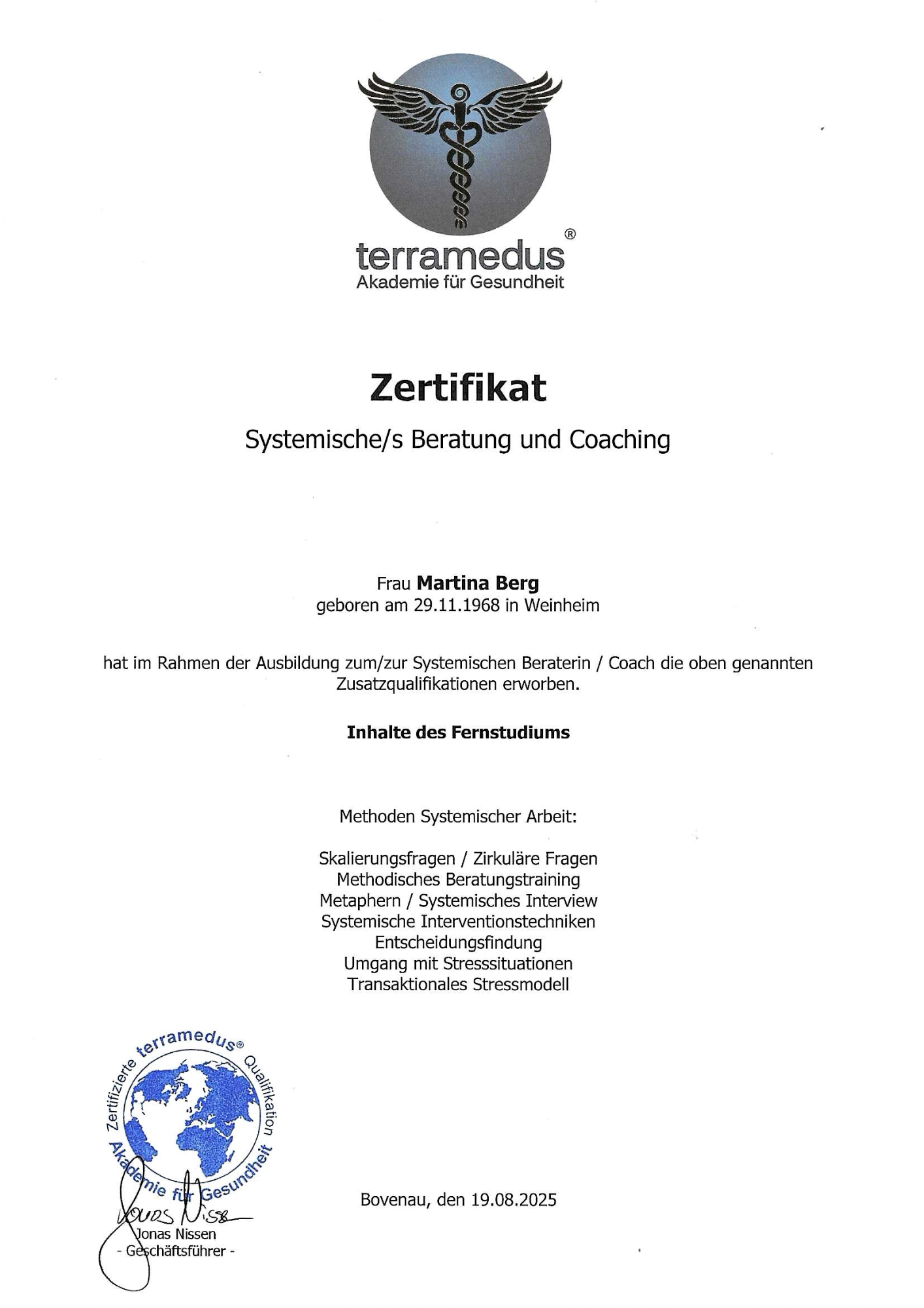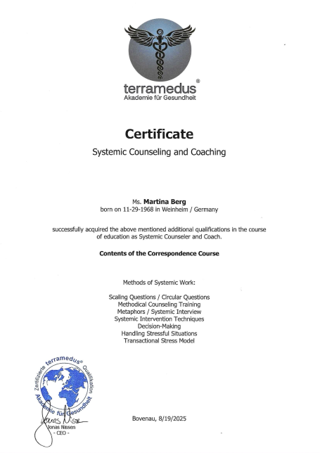 • Systemische Coachin 2025 "Terramedus", Fernstudium